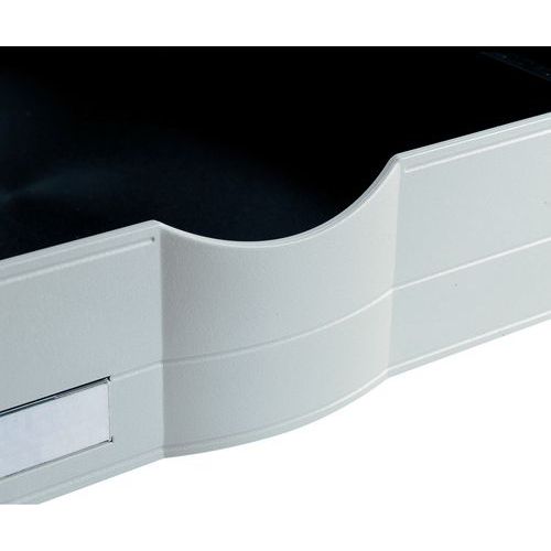 Cajonera con gran capacidad para documentos de hasta 24 x 32 cm. Altura regulable mediante tornillo. Consejos de seguridad: - Instalar el mueble sobre una superficie plana - Fijarlo a la pared o a un tabique con una fijación adecuada - Verificar que no se supera la carga máxima aconsejada y que se mantiene una buena distribución
