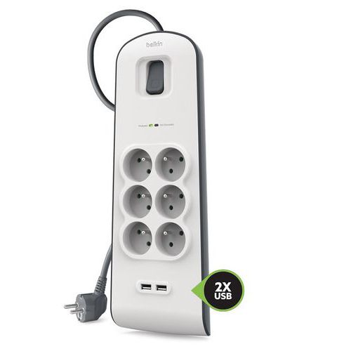 | Nombre del producto | Multitoma antirrayos 6 tomas Belkin, Cable longitud: 2 m, N.º de tomas: 6 |