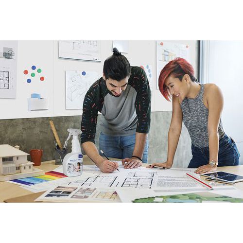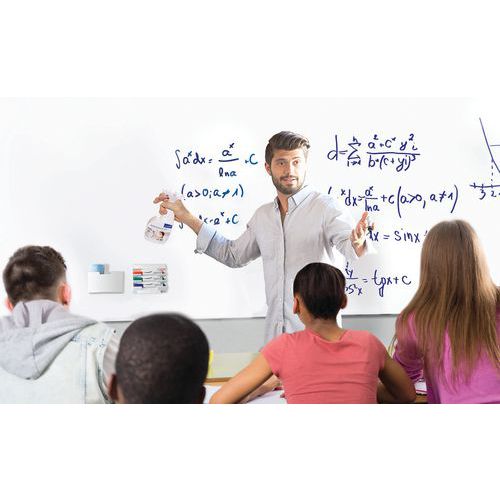 Secado rápido: ideal para pizarras XL en aulas, salas de reuniones y oficinas. Basta con pulverizar y limpiar con la ayuda de un paño de microfibra. Desinfecta y protege la superficie de la pizarra. La limpieza habitual de la superficie de la pizarra prolonga su vida útil. Pulverizador estanco, fácil de manipular.