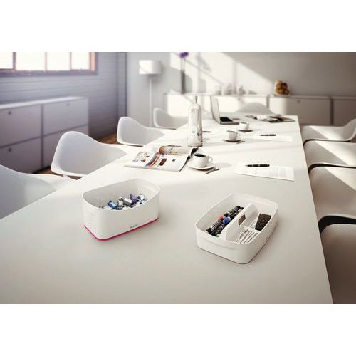 - - El organizador se apila sobre el borde superior de la caja MyBox® para ahorrar espacio de almacenamiento por debajo.