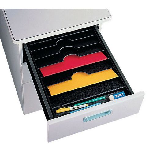 | Nombre del producto | Organizador de cajones negro A4, Anchura total: 32.7 cm, Nº de compartimentos: 6, Color: Negro |