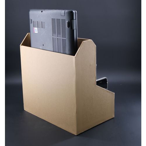 Gracias a la calidad y robustez de su cartón (1200 g), puede soportar un peso de hasta 4 kg (portátil, portátil 34x32, teclado compacto, equipo de oficina pequeño, etc.).