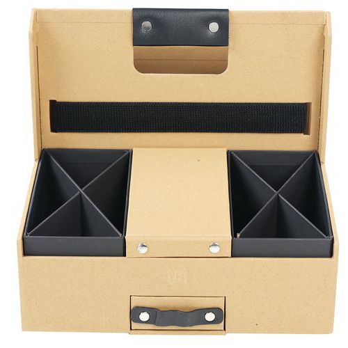 Acabados: su colorida armonía y la calidad de sus materiales, como los mangos de cuero, dan a nuestra caja de herramientas un toque de elegancia y refinamiento en su escritorio.
