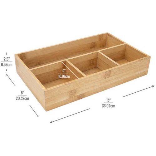 | Nombre del producto | Organizador multiusos en bambú, Material: Madera exótica, Nº de compartimentos: 4, Color: Haya, Altura: 6 cm |