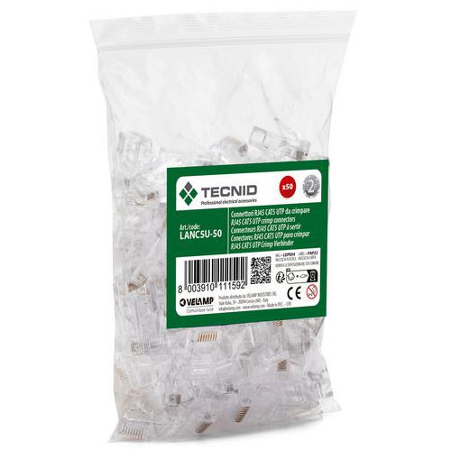 | Nombre del producto | Pack de 50 conectores de engaste para cable UTP CAT5, Ancho: 160 mm, Peso: 8 g |