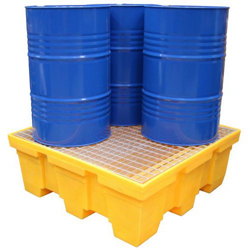 | Nombre del producto | Palé de retención, Capacidad de retención: 450 L, Color: Amarillo, Capacidad (n.º de barriles): 4 |