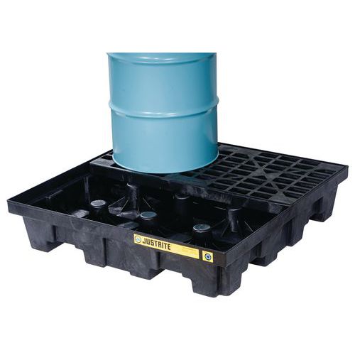 Palé de retención de vertidos. Para prevenir la contaminación de los suelos. Resiste a muchos productos químicos, ácidos y disolventes. Fácil de limpiar gracias a la rejilla extraíble del palé colector. Con capa protectora contra los rayos ultravioletas. Diseño robusto. Es resistente y recoge eficazmente los líquidos. Posibilidad de transportar en vacío.