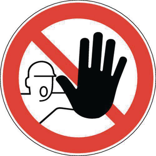 Señal de prohibición a personas no autorizadas adhesiva, Adhesivo: sí, Rígido: no, Norma ISO 7010: sí