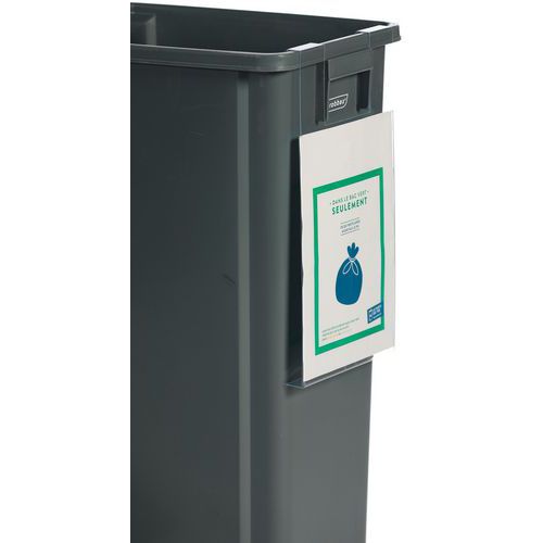 | Nombre del producto | Panel de señalización para cubos de recogida selectiva, Color: Transparente, Material: PVC |