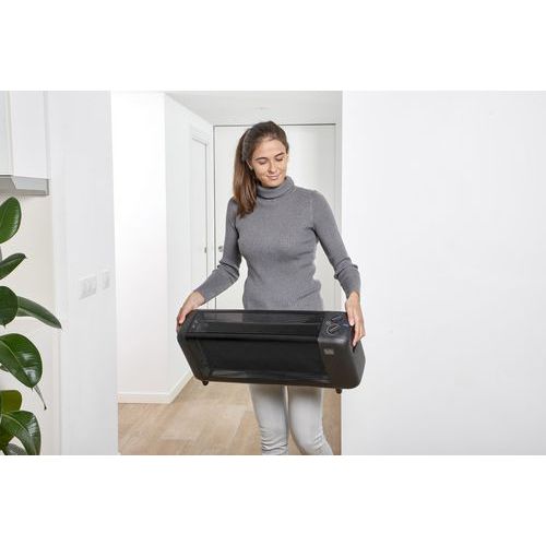 - Funcionamiento extremadamente silencioso y diseño compacto que incluye asa de transporte.