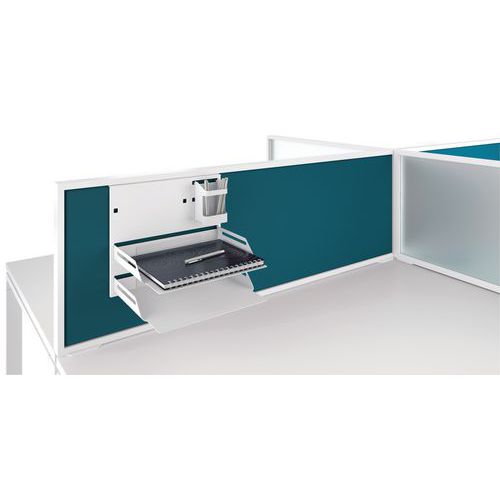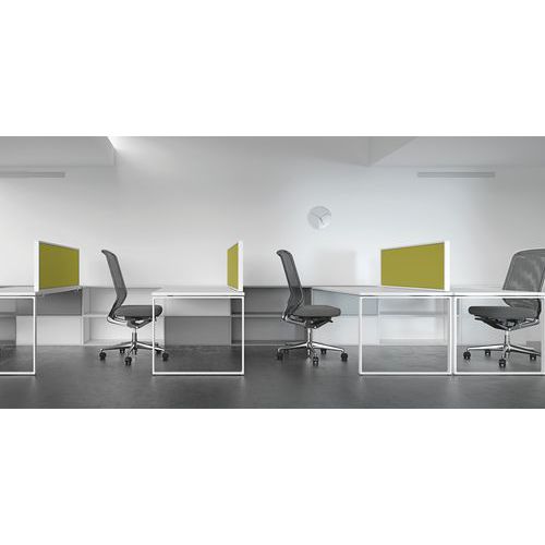 - Se adapta al conjunto de la oficina gracias a un sistema de pinza.