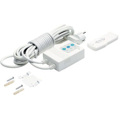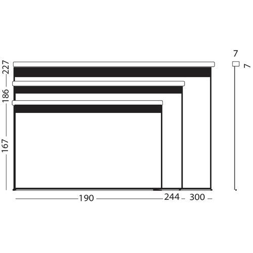 Pantalla de proyección eléctrica silenciosa. Color blanco mate. Bordes negros (3 o 5 cm) en todos los lados. Soporte de pared con motor integrado. Equipada con punto de fijación para pared y techo.