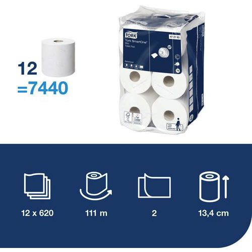 | Nombre del producto | Papel higiénico Tork rollo hoja a hoja SmartOne, Nº de pliegues: 2, Color: Blanco, Tipo: Papel higiénico |