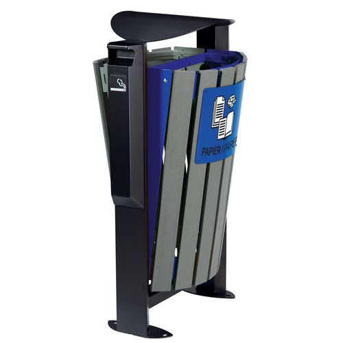 | Nombre del producto | Papelera de clasificación- 2 x 60 L y cenicero, Color: Gris/amarillo, Altura: 101.5 cm, Ancho: 57.8 cm |