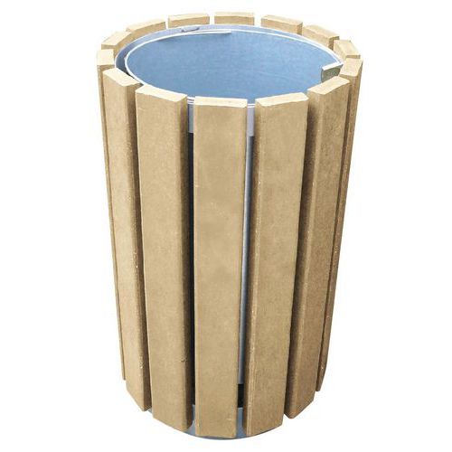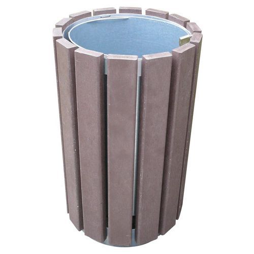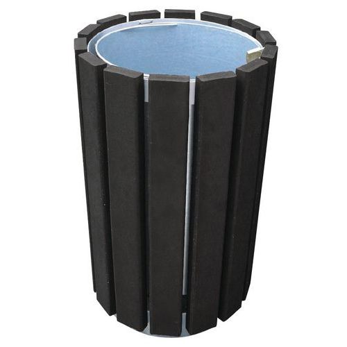 - Papelera redonda sin tapa con láminas de plástico reciclado grosor 30 mm.
