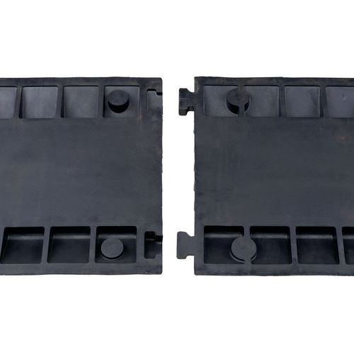 Pasacables de canal modular con cubierta protectora. Montaje sencillo y seguro de módulos con lengüetas de encaje a presión. En goma reciclada totalmente negra con cubierta robusta de PE. Goma tintada en la masa: resistencia al frío y tráfico intenso. Canaleta perfilada para un deslizamiento perfecto de los vehículos a medida que pasan.