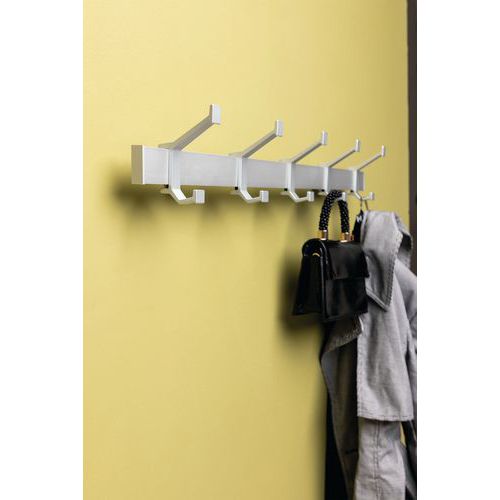 | Nombre del producto | Perchero, N.º de colgadores: 5, Ancho: 73 cm, Color: Gris, Tipo de producto: Mural, Materiales: Aluminio |