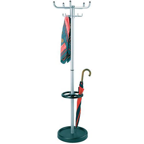 | Nombre del producto | Perchero Larco, N.º de colgadores: 10, Color: Gris, Tipo: Con paragüero, Altura: 180 cm, Material: Aluminio |