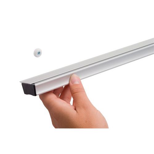 - Perfil de aluminio con ruedas de plástico que sirven como pinza para el papel.