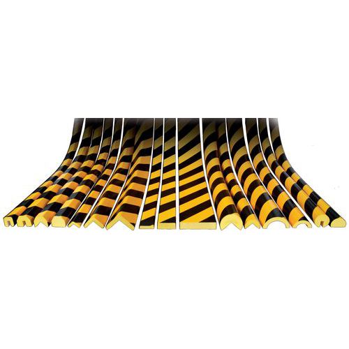 Evite lesiones relacionadas con impactos al mismo tiempo que protege los bienes de equipo. Señalan las zonas peligrosas en interiores y exteriores con marcado de seguridad amarillo y negro. Espuma de poliuretano muy flexible completamente libre de HCFC. Resistencia de temperatura (de -40 a +100 °C). Se fija con adhesivo de alto rendimiento en diversas superficies limpias y sin grasa.