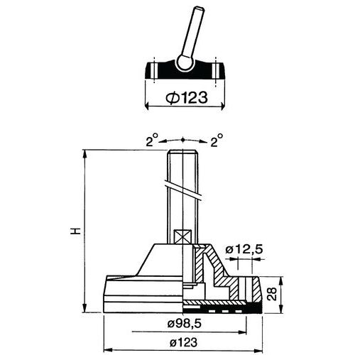 Pie regulable de poliamida - Ø 123 mm - 4500 kg - Acero cincado