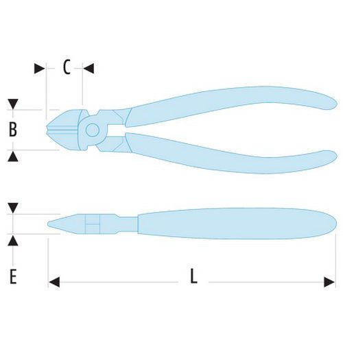 - 405: corte axial. 416 - 435: corte semirraso, puntas afiladas. 425: corte a ras, alargadores de 13 mm. Presentación: bruñido mate, revestimiento rojo, muelle de apertura.