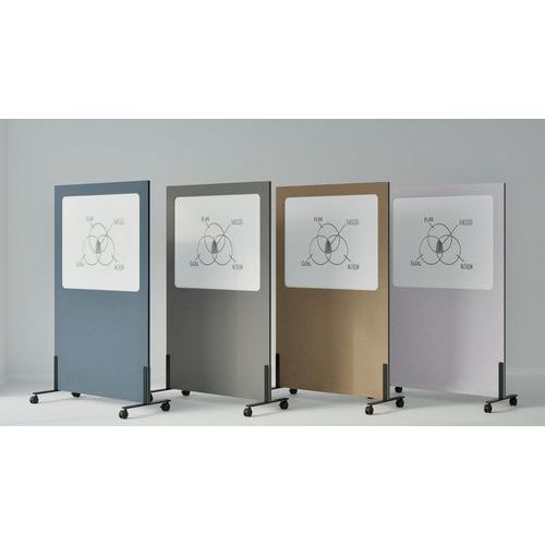 Pizarra blanca acústica móvil, diseño elegante y moderno. Con su bastidor de fieltro PET insonorizado, Silva reduce la contaminación acústica y crea un entorno de trabajo silencioso y productivo. Superficie de escritura de acero esmaltado integrada en un marco acústico de fieltro PET para una comodidad silenciosa. Esta pizarra móvil, montada sobre ruedas, se adapta a sus necesidades. Se puede escribir en ambos lados. La pizarra blanca Silva combina funcionalidad, acústica y color.