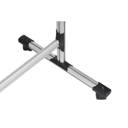 - Estructura de aluminio ligero pero robusto montada sobre cuatro ruedas bloqueables para mayor estabilidad.