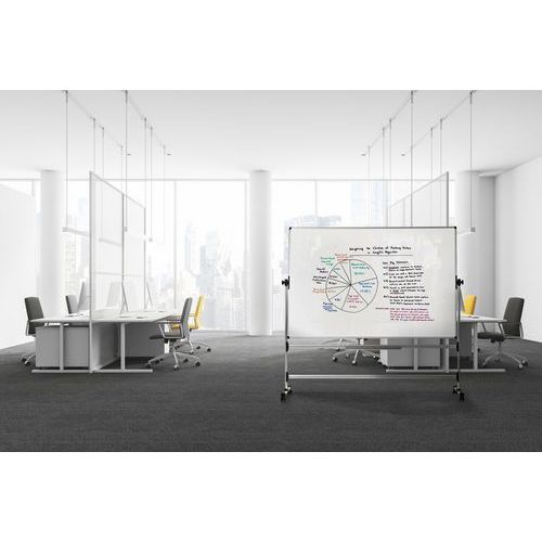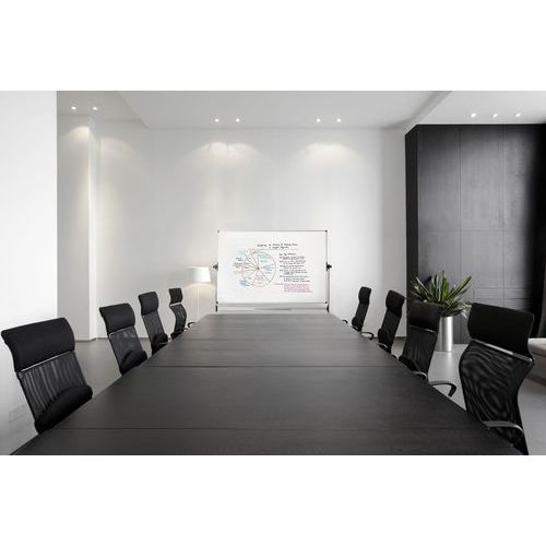 - La pizarra blanca giratoria móvil Bi-Office EARTH combina durabilidad, portabilidad y diseño contemporáneo.