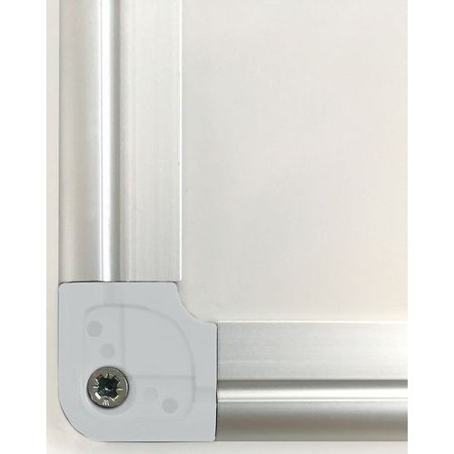 Pizarra blanca esmaltada con marco de aluminio resistente y elegante. Práctica para sus presentaciones gracias a su superficie magnética. Adaptada para un uso intensivo. Garantía contra las rayaduras y las marcas. Dotada de un anaquel portaaccesorios para mantener sus rotuladores al alcance de la mano. Montaje en pared simple y rápido (fijaciones suministradas). 4 orificios traseros en las 4 esquinas (3,5 mm de diámetro). Orificios de fijación ocultos mediante tapas de plástico para tornillos. Fabricado en la UE Magnetico Garantía al cliente : 10 años