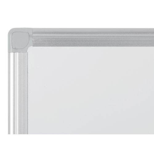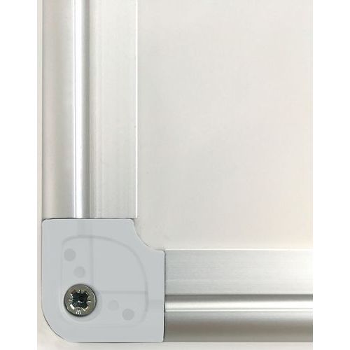 Pizarra blanca esmaltada con marco de aluminio resistente y elegante. Práctica para sus presentaciones gracias a su superficie magnética. Adaptada para un uso intensivo. Garantía contra las rayaduras y las marcas. Dotada de un anaquel portaaccesorios para mantener sus rotuladores al alcance de la mano. Montaje en pared simple y rápido (fijaciones suministradas). 4 orificios traseros en las 4 esquinas (3,5 mm de diámetro). Orificios de fijación ocultos mediante tapas de plástico para tornillos.