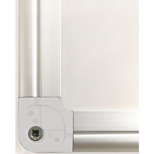 Pizarra blanca imantada y lacada de alta calidad. Gran comodidad de escritura gracias a su superficie de acero lacado. Parte posterior de la pizarra softboard. Se puede utilizar para escribir o para presentaciones gracias al revestimiento magnético. Resistente y elegante, con marco de aluminio. Práctica gracias al anaquel de almacenamiento incluido. Fácil de borrar en seco. Fijación mural rápida y sencilla. 4 orificios traseros en las 4 esquinas (3,5 mm de diámetro). Orificios de fijación ocultos mediante tapas de plástico para tornillos.