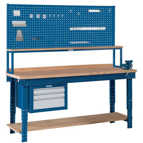 Placa perforada y soporte para balda para mesa de trabajo, Ancho: 2000 mm, Altura: 700 mm, Color: Azul