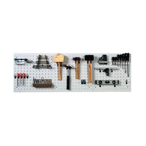 | Nombre del producto | Placa y ganchos Perfo Light, Color: Gris, Anchura Panel: 500 mm, Altura Panel: 500 mm, N.° de paneles: 3 |