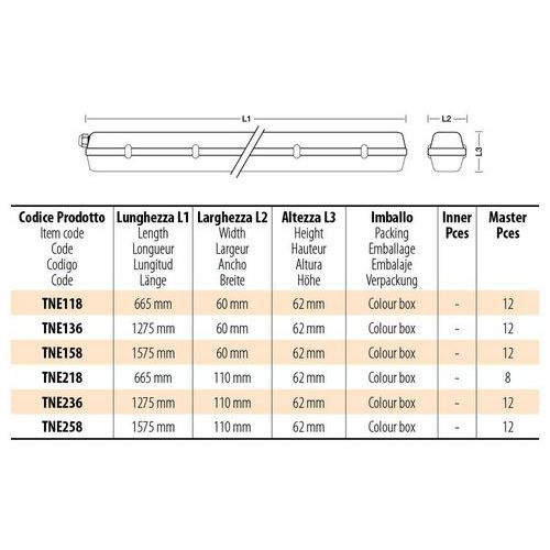 - Tubos LED T8 mm reemplazables, casquillo G13.