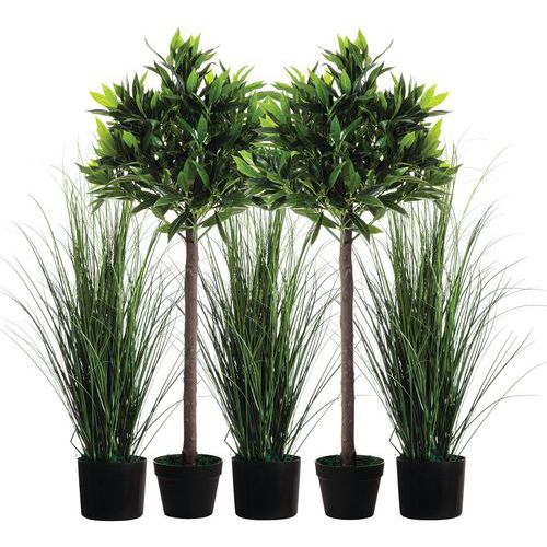 - Follaje artificial denso de aspecto natural, no requiere ningún mantenimiento.