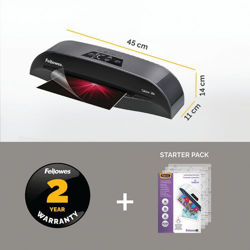 Livrée avec un kit de démarrage contenant 10 pochettes de plastification et une feuille de nettoyage inclus.
