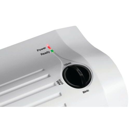 - Plastifica documentos hasta formato A4 en menos de un minuto.