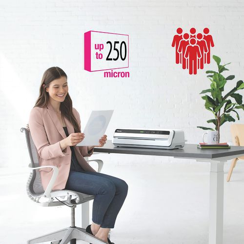 Importante: Tecnología ClearPath para plastificar sin atascos (garantizado con las fundas de plastificación de Fellowes). Admite todo tipo de fundas hasta A3 y 250 micras (2 x 250).