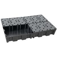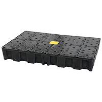 Cajas apilables de polietileno.  Disponibles en tamaños diferentes, para formar una plataforma de retención.   Rejillas sólidas y extraíbles con superficies antiderrapantes.  Los elementos de unión (accesorios) garantizan la modularidad de la instalación.   Puesto combinado de almacenamiento y de trasiego