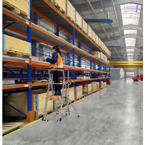 Plataforma móvil PIR PIRL Veloce con barandilla y correas anticaídas - 2 a 7 peldaños - Tubesca Comabi Plataforma móvil PIR PIRL Veloce con barandilla y correas anticaídas - 2 a 7 peldaños - Tubesca Comabi