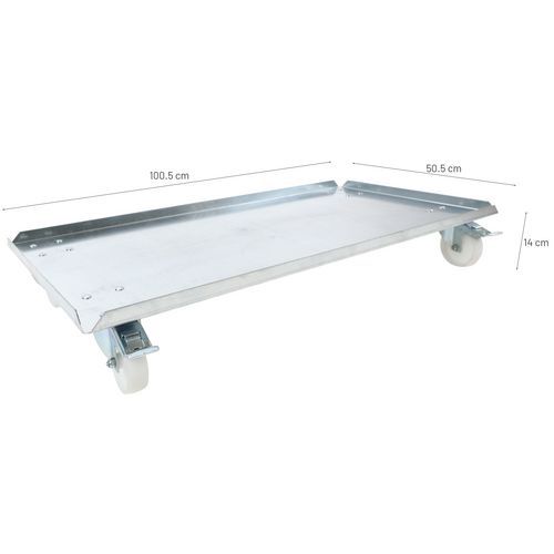 | Nombre del producto | Plataforma rodante, Ancho: 1005 mm, Profundidad: 505 mm, Altura: 140 mm, Material: Acero, Carga máx.: 150 kg |