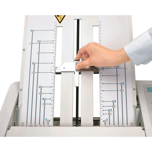 | Para formatos | De B7 a A3Modo estándar: de 40 a 180 hojas A4 por minuto. Modo de reducción de ruido: 60 hojas A4 por minuto. Modo de papel grueso: 60 hojas A4 por minuto.Modo rápido: 240 hojas A4 por minuto (para un pliegue simple) |