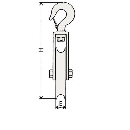 - Roldana de acero con gancho giratorio con lengüeta de seguridad.