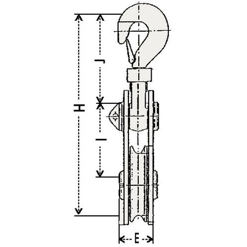 Diseño compacto y robusto. Uso sencillo: apertura para colocar o sacar el cable sin desenganchar la polea. El uso de un guiacables embutido en el soporte de chapa de acero mejora la vida útil del cable dado que lo encauza siempre por la garganta. Versión con gancho giratorio (carga de 200 o 500 kg) o gancho giratorio con lengüeta de seguridad (carga de 1000 a 5000 kg).