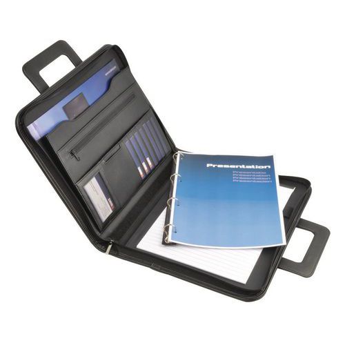 | Nombre del producto | Portadocumentos con asas retráctiles, Material: PVC, Color: Negro, Ancho: 28.5 cm, Altura: 35.5 cm |