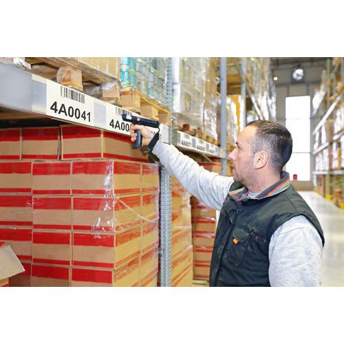Portaetiquetas adhesivo extragrande de 125 mm de altura, ideal para su almacén.