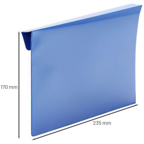 | Nombre del producto | Portaetiquetas para palé plegable, Color: Azul, Modelo: Para formato A5, Ancho: 235 mm, Altura: 170 mm |
