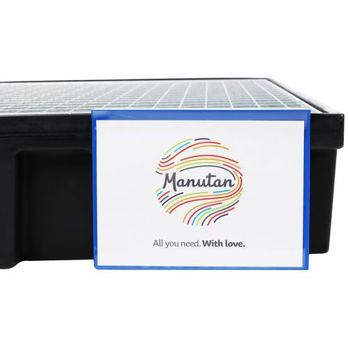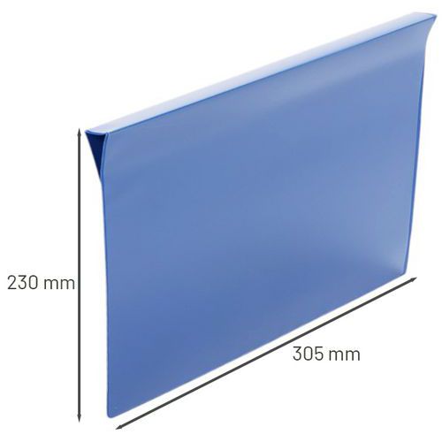 | Nombre del producto | Portaetiquetas para palé plegable, Color: Azul, Modelo: Para formato A4, Ancho: 305 mm, Altura: 230 mm |