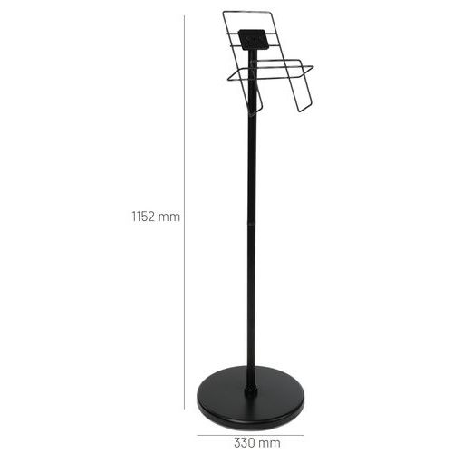 | Nombre del producto | Portafolletos A4 con pie de acero negro, N.º de baldas: 1, Color: Negro, Anchura total: 330 mm |